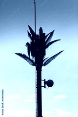 Telecommunication mast / tower with Palm tree leafs and TV transmitter antenna