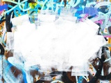 Graffiti textured abstract background with white central space. Urban 2000s style, vibrant colors, layered spray paint. Artistic projects, web header, creative flyers, city-themed displays.