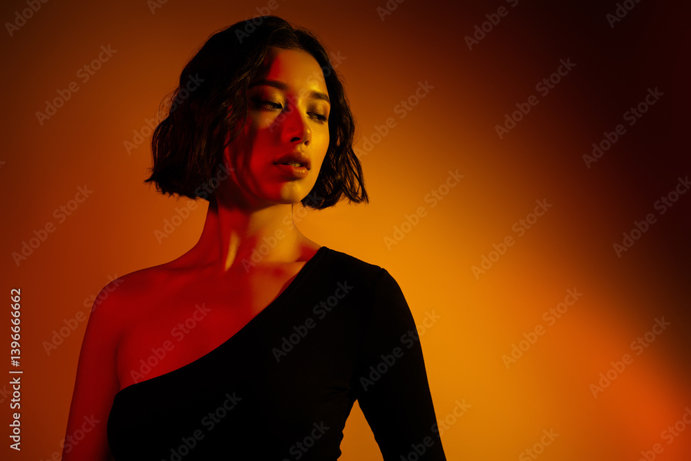 Young female model posing in a dramatic gradient light portrait with modern fashion vibes