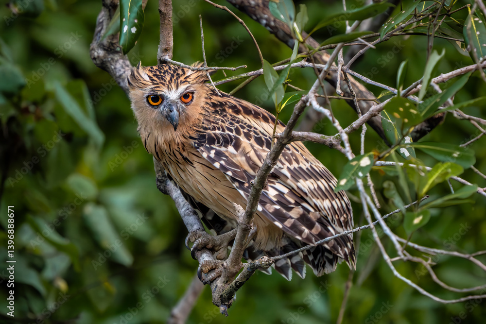 Buffy Fish Owl - Ketupa ketupu, large beautiful fish owl from Southeast Asian tropical forests and freshwater wetlands, Singapore.