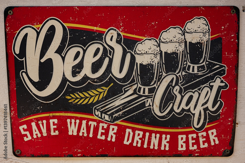 Vintage beer craft sign promoting drinking beer with stylish typography
