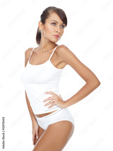 Young beautiful woman in white fitness clothing