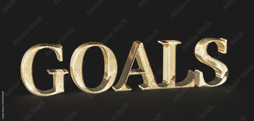 Motivational image of golden GOALS text. Ideal for business, success, and ambition concepts.