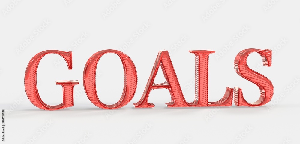 Red 3D text spelling GOALS. Ideal for business, success, and motivation concepts.