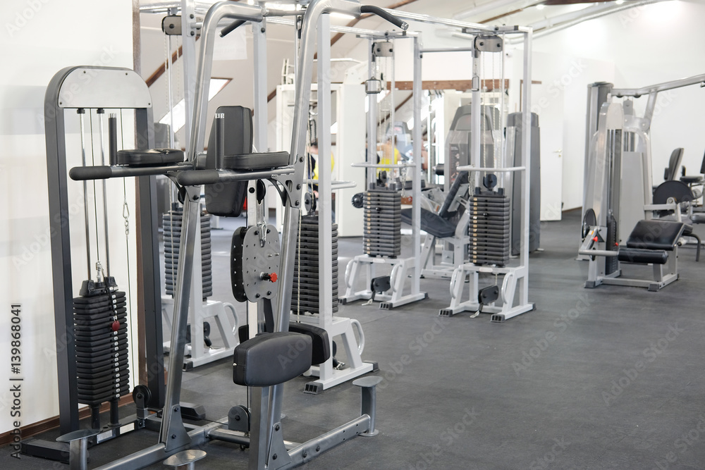 Fitness hall with fitness machines