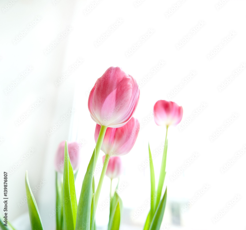 pink tulips isolated on white background