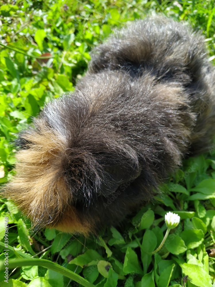 Red Abyssinian Guinea Pig on green grass.