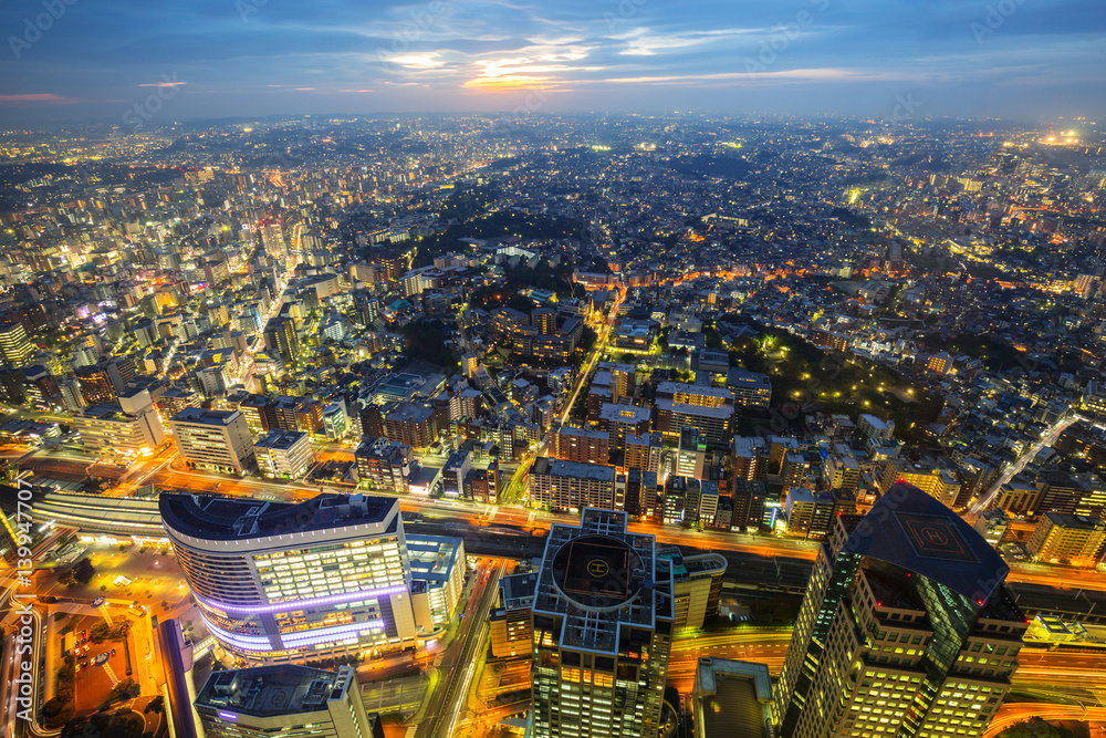 Aerial view of Yokohama city at night, Japan