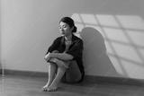 Woman seated against a wall reflecting on life during a quiet afternoon in an indoor setting with soft light filtering through a window