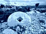A Roman-era crushing-milling used in the ancient olive oil processing workshop, located in the ruins of Sakizlik, in the Saglikli neighborhood of Tarsus, Mersin