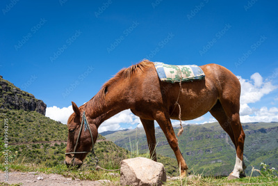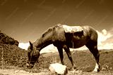 Brown Horse Grazing in the Andean Mountains at Waqrapukara, Peru