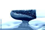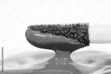 Macro shot of a lip gloss applicator covered in a rich, glossy pink product