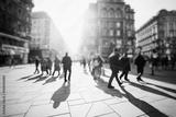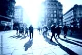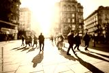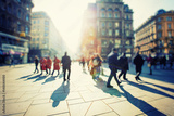 Crowd of anonymous people walking on busy city street