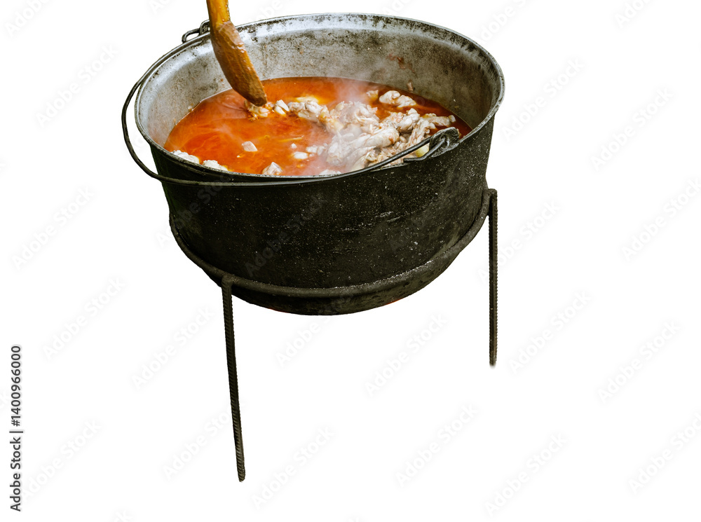 Romanian traditional food prepared at the cauldron on white background