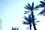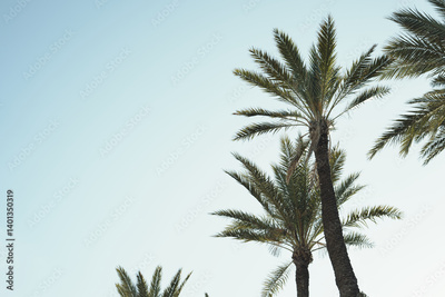 Tall palm trees against clear blue sky creating a serene tropical vibe