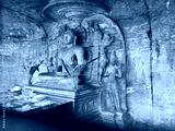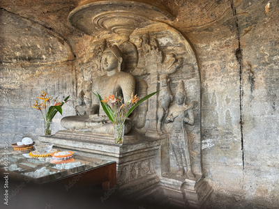 ガル・ヴィハーラの石窟内の仏像、金網の奥、ポロンナルワ遺跡、世界遺産