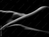 Sexy body nude woman. Naked sensual beautiful girl. Artistic black and white photo.