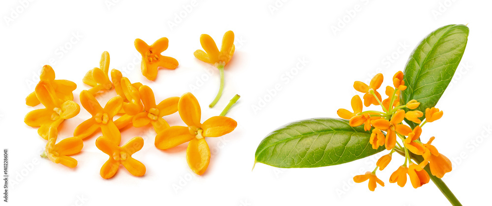 sweet osmanthus flowers with leaf isolated on white background.