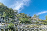 補強された山の斜面 / 北海道 青空バック