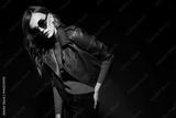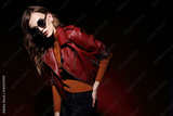 fashion model in sunglasses, beautiful young woman. leather jacket, studio shot