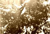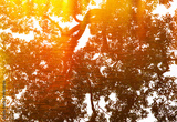 double exposure of silhouette tree with sun reflection on water
