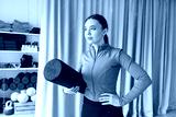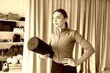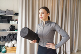 Focused Individual Engaged in Stretching Exercises With a Foam Roller in a Modern Fitness Studio Setting