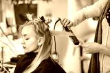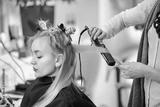 Hair styling in a beauty salon .