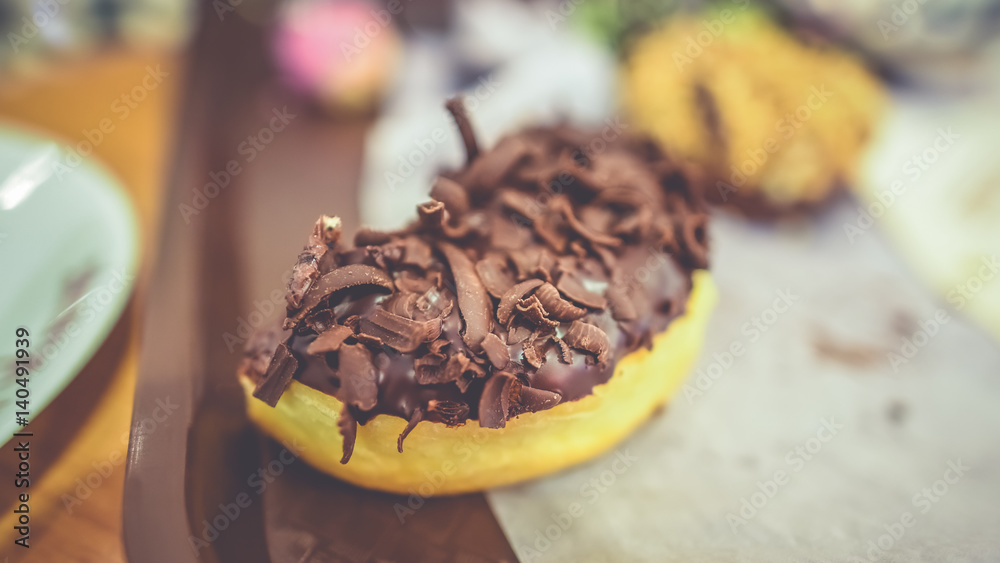 Tasty chocolate flakes on bread.