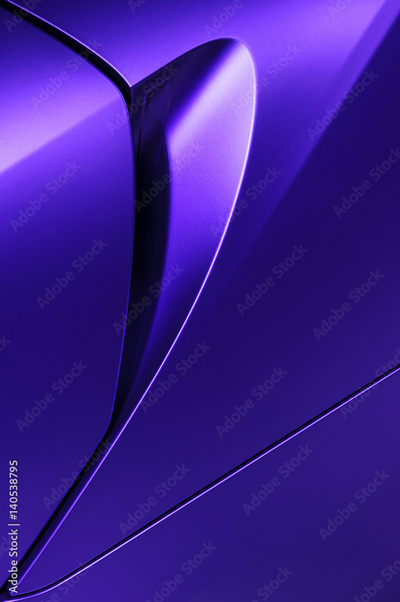 Bodywork of lilac sedan, surface of sport car door and handle in ultramodern style, detail of concept racing vehicle