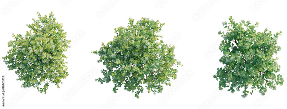 Spiraea betulifolia Tor Gold tree plan top view 4k png transparent cutout isolate background