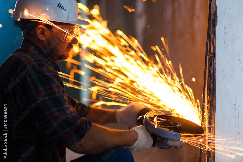 Craftsman sawing metal with disk grinder