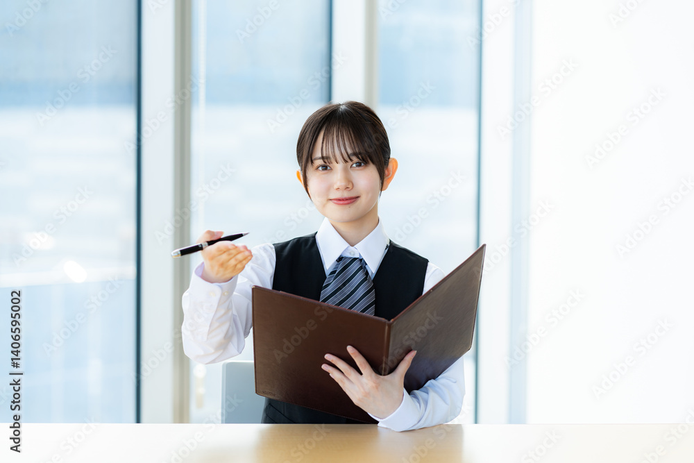 受付の若いビジネスウーマン【撮影協力:学校法人電波学園 東京電子専門学校】