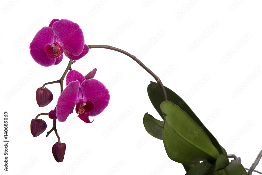 Blooming purple Phalaenopsis orchid with buds isolated on white background