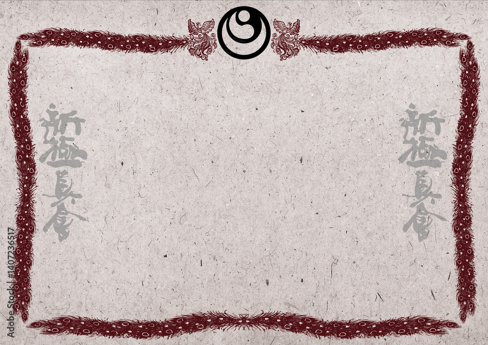 Certificate, diplom karate shinkyokushin . Old vintage paper texture background art design.