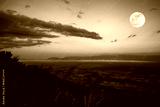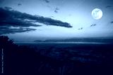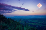 The full moon in the evening after sunset. Outdoors at nighttime.