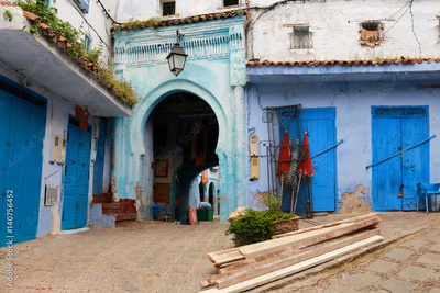 Detail of a street in the village of Chefchaouen in Morocco, a fantastic destination for a holiday
