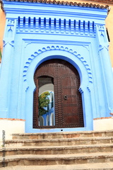 Traditional wooden door of house in the village of Chefchaouen