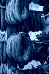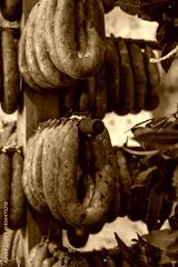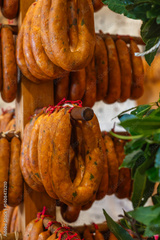 alheira, typical smoked sausage from the north of Portugal. Feira do fumeiro. Montalegre