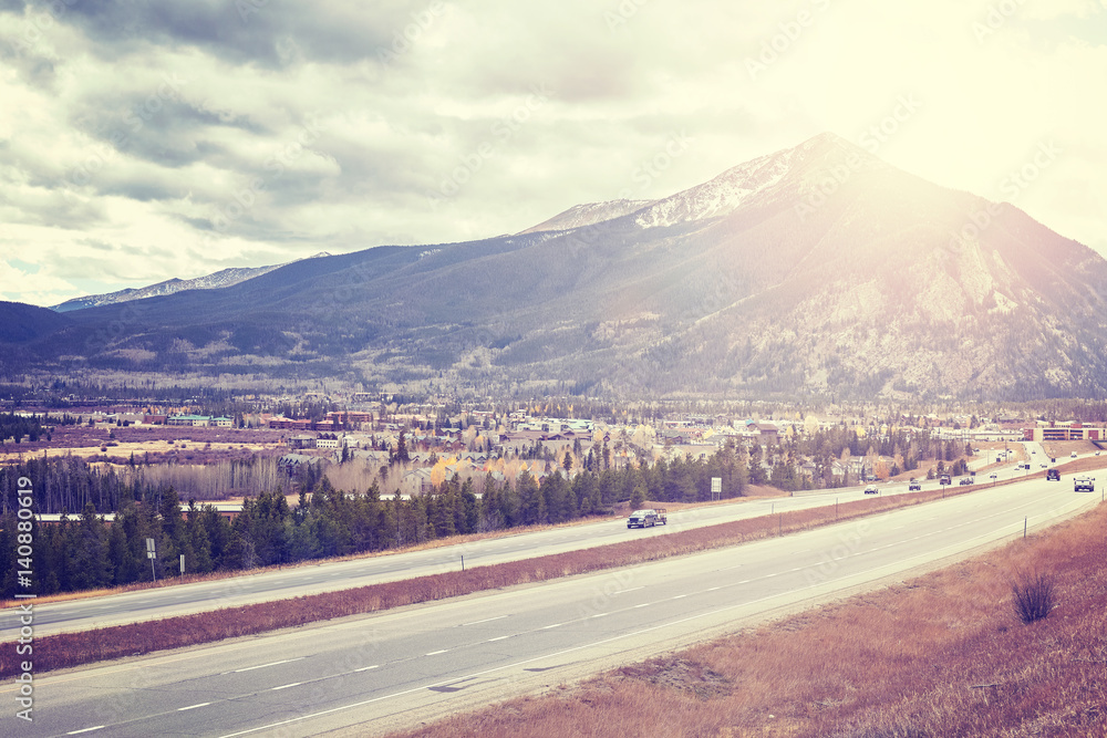 Frisco town seen from interstate highway 70, color toned picture, Colorado, USA.
