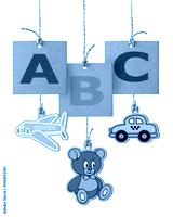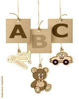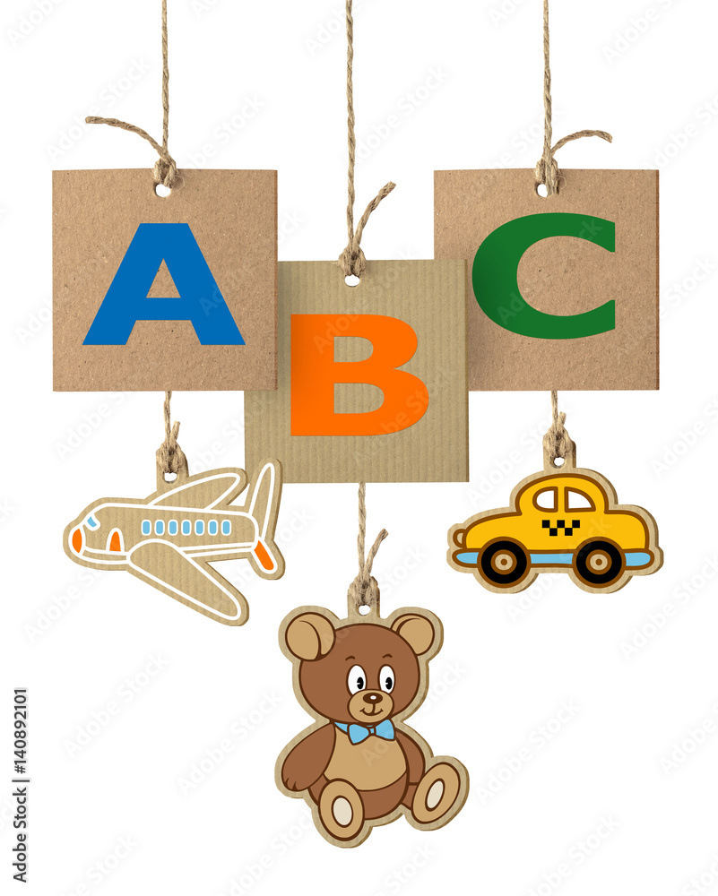 ABC letters on cardboard label isolated on white