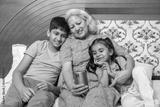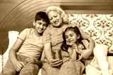 Indian grandmother with grandparents using smart phone at home. Children with grandma watching video or social media on mobile phone. 5G fast internet. Entertainment. Retired senior woman with kids.