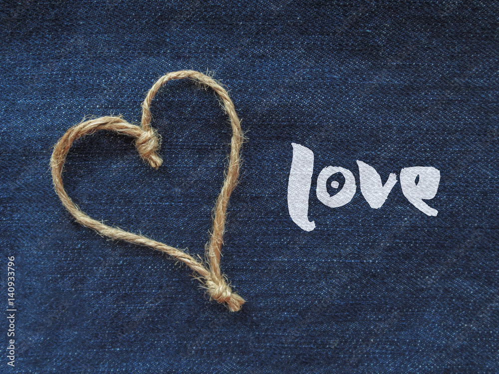 Sign heart of twine in denim