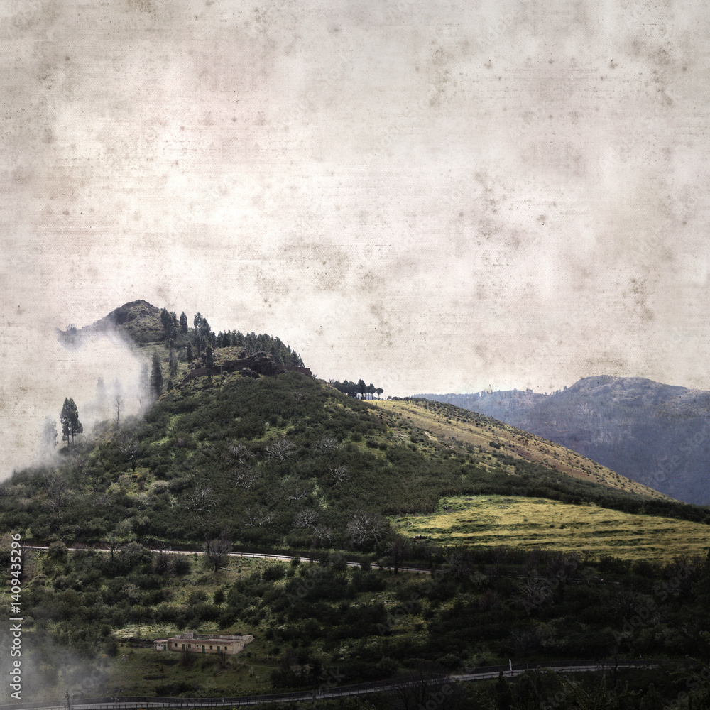 textured stylish old paper background, square, with landscape of central Gran Canaria