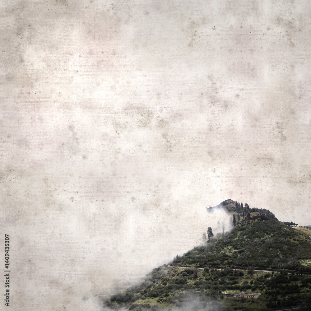 textured stylish old paper background, square, with landscape of central Gran Canaria