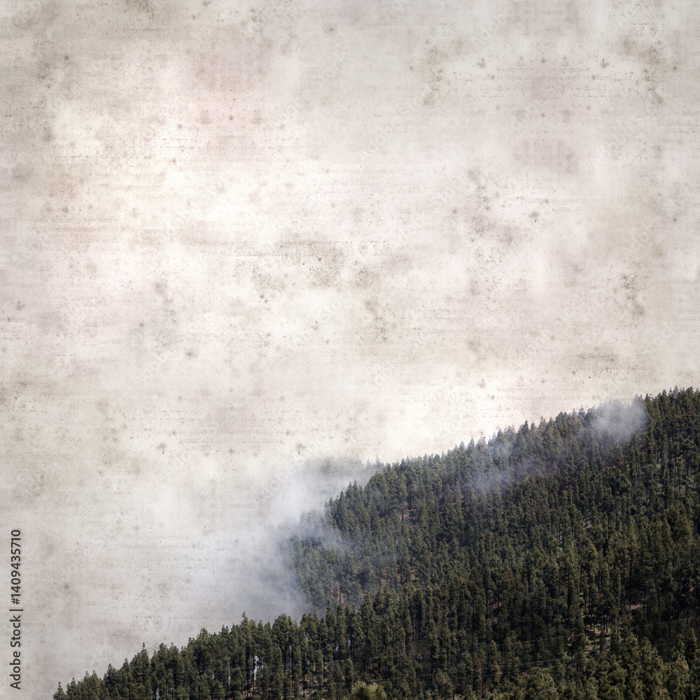 textured stylish old paper background, square, with landscape of central Gran Canaria