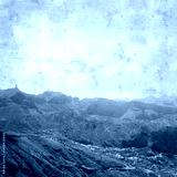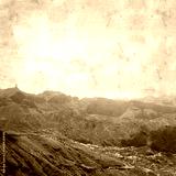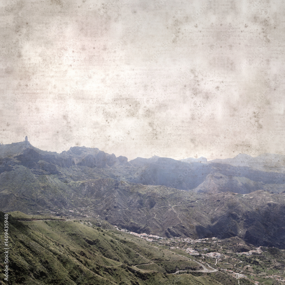 textured stylish old paper background, square, with landscape of central Gran Canaria