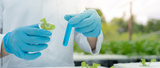 Organic farming, salad farm. Science farmers are checking water conditions during planting, checking for pesticide residues. Hydroponics vegetable, Ecological Biological, Healthy, Vegetarian, ecology