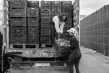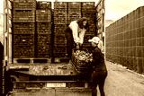 Pepper harvesting in Almeria greenhouse with workers loading crates onto truck