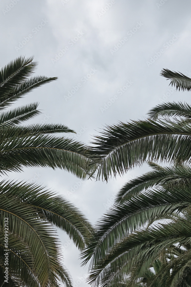 Palm Fronds Against Cloudy Sky