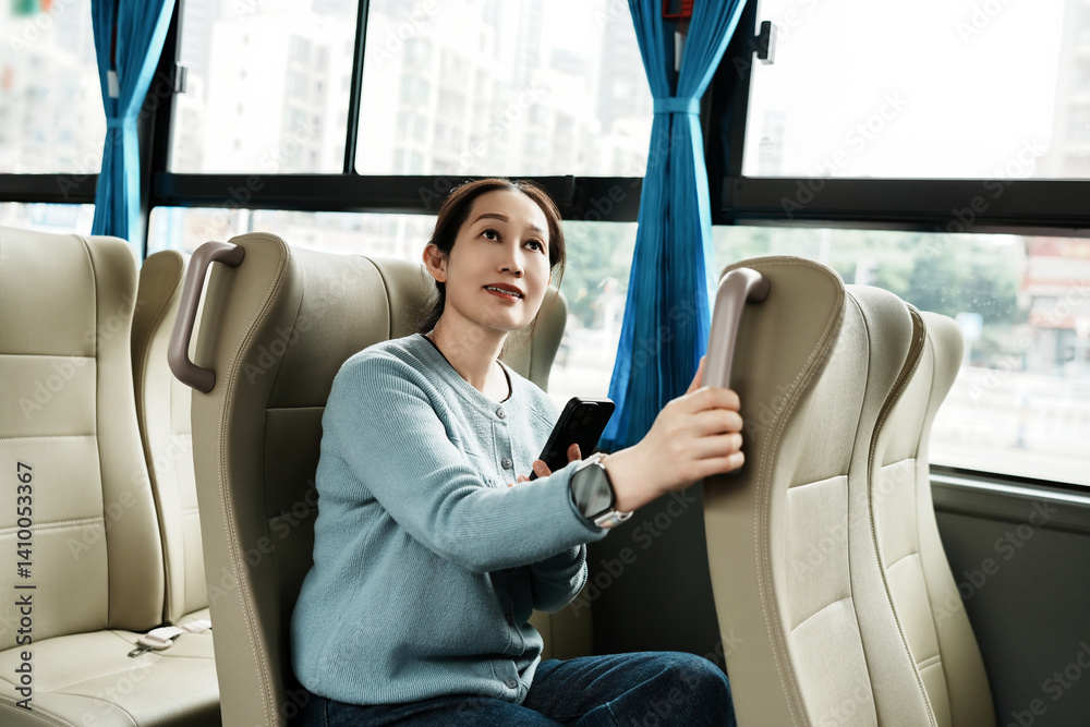 A Thoughtful Commuter on a City Bus
